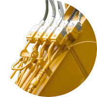 - ストップバルブ方式の油圧配管は、従来方式と比較して安全に、油漏れもごくわずかでホースの脱着が行えます。