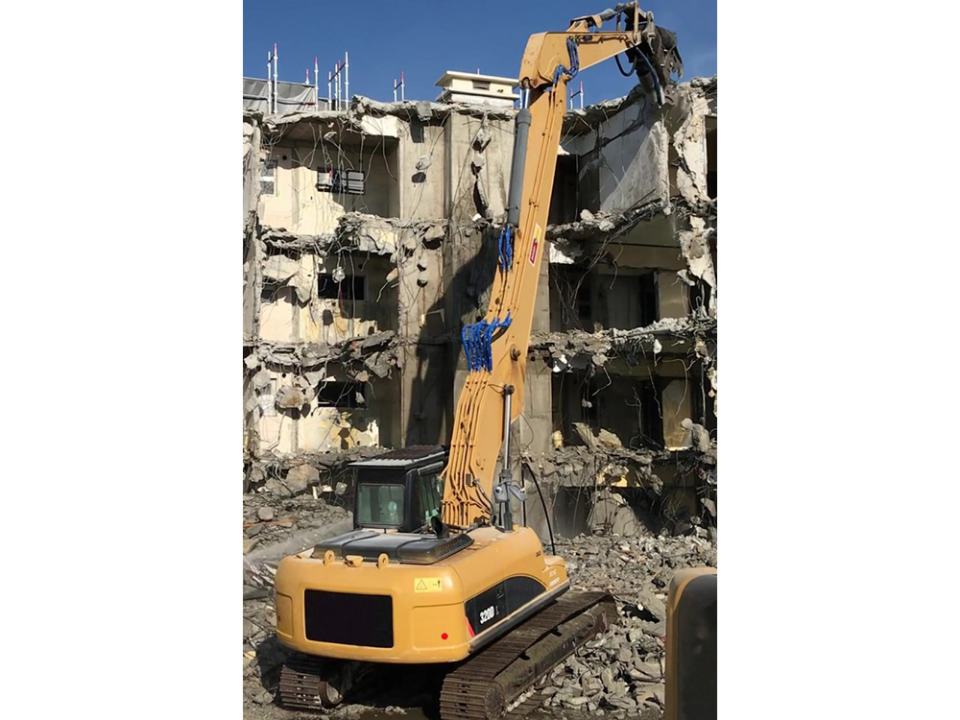 プロボシステムは2ndブームの作動ピンが支点ピンより後方に位置させることによりプロボシリンダーの保持能力をフルに使う事ができ、掘削時のシリンダーが伸びる現象を防止し掘削力を維持します。また、プロボシリンダーを1stブームに格納することによりブーム下の懐スペースを確保、狭い場所での周辺の建造物・鉄筋等への接触をガードします。
