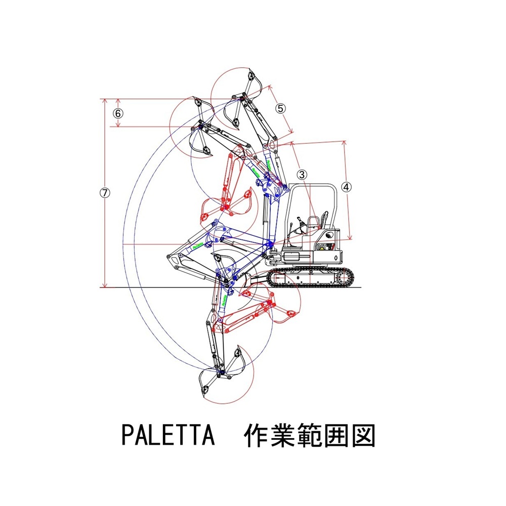 パレッタはブーム曲がり角度を2段階に変更できるミニショベル用2ポジションブームです。高所作業等の高さが必要な際にはストレートポジション、掘削等の通常作業時にはベントポジションに現場で簡単に変更できます。現場作業員によるピンの抜き替えだけでポジションの変更ができる便利なシステムです。