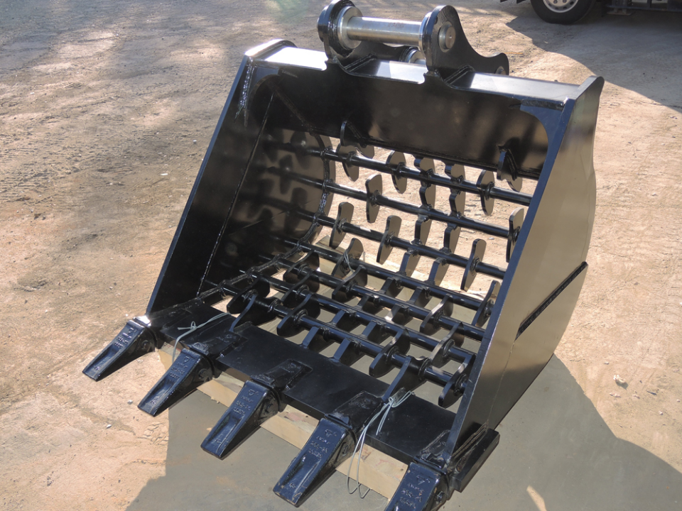 特許を取得している独自デザインのロデオブレードが、バケット内瓦礫の跳ね回りを誘発させ、従来のスケルトンバケットの約1.5倍(当社比)のスピードでふるい分け作業が行えます。瓦礫、ガラの種類やバケットの使い方に合わせて強化リブ1本装備のB型と、2本装備のC型もご用意しております。バケットサイズは、3t、8t、15t、20tクラスがございます。特注仕様についてもご相談承ります。